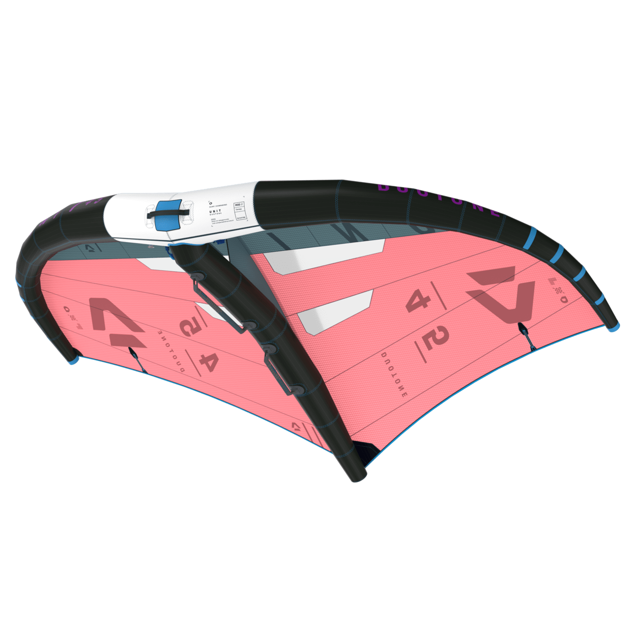 The 2024 Unit is yet taken another step ahead of the pack and is spiced with a new level of riding comfort, improved drift stability and features you simply don’t want to miss.The Duotone Unit led the way in Wing design over the past years. Many of our competitors tried to copy and match the performance and handling, yet with the combination of wing design, technology and materials the Unit is still the benchmark out there.The 2024 model brings us another step forward with the introduction of a long carbon front handle allowing one-handed riding, an angled strut, which increases the riding comfort and with tweaks on the outline, twist and canopy tension further improving the Units power delivery and drift stability.Designer Ken Winner optimized the angles of the strut in the handle area, resulting in a more natural riding position with the back arm being straighter and not constantly pulled in, which is especially noticeable when riding toe side.The second great improvement to the handling is the introduction of a significantly longer carbon front handle, allowing the rider to bring the front hand further back and fly the wing one-handed for minutes. A benefit which opens doors to new tricks and a level of riding comfort you don’t want to miss.With further refinements to the outline and curvature as well as the twist and tension of the MOD3 canopy, the new Unit flies more precise and stable when sheeted in and has a more neutral drift when flagged out on the wave.Whether you’re into pure and effortless carves in the surf, want to boost big airs with solid hang time or simply want to go straight forward with plenty of lift and power - the 2024 Unit is a real Winner – not only by the Designers Name – equally by the outstanding performance and its handling!
