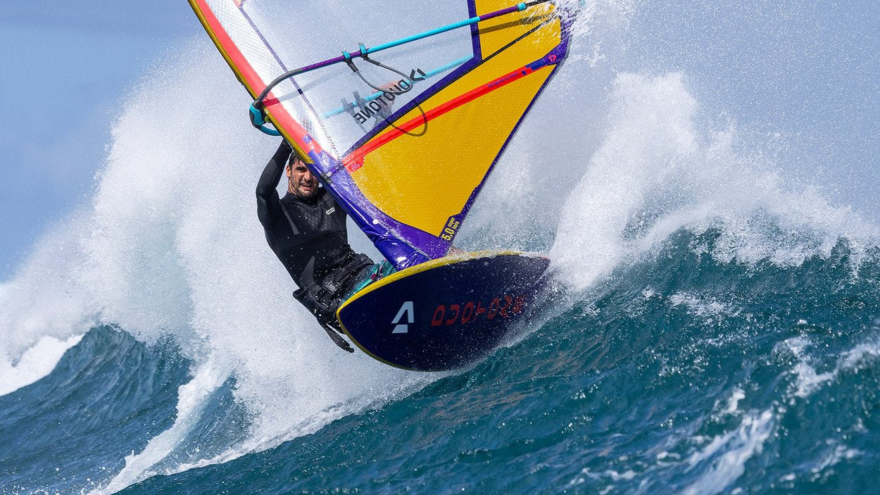 Rather than creating special onshore, sideshore or even asymmetric boards that only work in very limited conditions/spots. Such boards might give you a slight edge in super extreme conditions, but custom boards also often turn out to be a surprise egg. Our GRIP SLS boards are constantly evolving designs and constructions to ensure we are continuously at the forefront of development yet with over 40 years of experience. We call them World Cup Wave boards as they are engineered to satisfy the best of the best on all kind of spots around the globe, from jumping-oriented side-on conditions like Pozo to down-the-line groundswell conditions like Hookipa.During development, the major inputs came from two-time PWA Wave World Champion Victor Fernandez and the highest-ranked future Wave Champ contender Marc Paré. These guys are not just 2 of the best wave sailors on the planet, but they both have a very contest oriented riding style. Therefore instead of demanding super specialised and extreme shapes they always aim for:Boards that are super balanced and easy to control in all kind of conditions without taking on a life of their own, to score maximum turns and jumpsBoards that are super versatile to sail and allow front- and back foot riding to get the most out of each wave even when the conditions are changingBoards offering a maximum wind range to avoid being forced to switch boards during the heatWell isn’t that exactly what we all expect from our wave board? And that’s why Marc and Victor are our most important assets in the development process. In fact, all our GRIP SLS production boards are exact replicas of their best boards from the PWA tour.Now the most important question you need to ask yourself is which fin configuration best suits your personal riding style:The GRIP 4 with its Quad fin configuration gives you maximum drive and grip for committed rail to rail turns, even in XXL wavesThe GRIP 3 has a slightly better acceleration due an efficient rocker with a lower-drag entry, which is especially helpful in jumping conditions. The Thruster fin configuration allows for earlier tail release for tighter/slashier turns, even in non ideal wavesAt DUOTONE, the main objectives for all our products are weight saving but at no cost of durability and offering an unmatched plug & play setup. Cause these are the 2 things that help everyone, from beginner to pro level. Here is what we did to the 20.24 GRIP SLS lineup:No 5 multi-setup fin-boxes: this just adds unnecessary weight and drag and is always a compromise since every fin configuration requires a different board shape (bottom and rail shape, outline, scoop-rocker line) to exploit its full potential. It also prevents the board from becoming tail-heavy/sticky. Plus finding a good working setup with 5 boxes is just the opposite of plug & play. The mini mast track reduces the weight in the critical nose area. It also reduces the risk to misplace your mast base while still providing just the right amount of length adjustment for all riding styles and sail sizes. The mini side fin boxes no longer offer any adjustment to prevent misplacing your fins. Now all adjustability for different riding styles and sail sizes is done through the center fin(s) only - simple and lightweight!Our exclusive layup based on over 40 years of experience got refined by DUOTONE chief board construction and QR manager Vasin Siritho.Even the artwork got weight optimised by minimising heavy PVC stickers. All these efforts add up to a noticeable weight reduction of 400-500g (depending on the board size) without compromising our bombproof durability: STRONG-LIGHT-SUPERIOR!In addition, they simply work to their best right out of the box, just plug & shred.YOUR NEW GRIP SLS DREAM MACHINES ARE READY AND WAITING FOR YOU TO TAKE YOUR RIDING TO THE NEXT LEVEL!