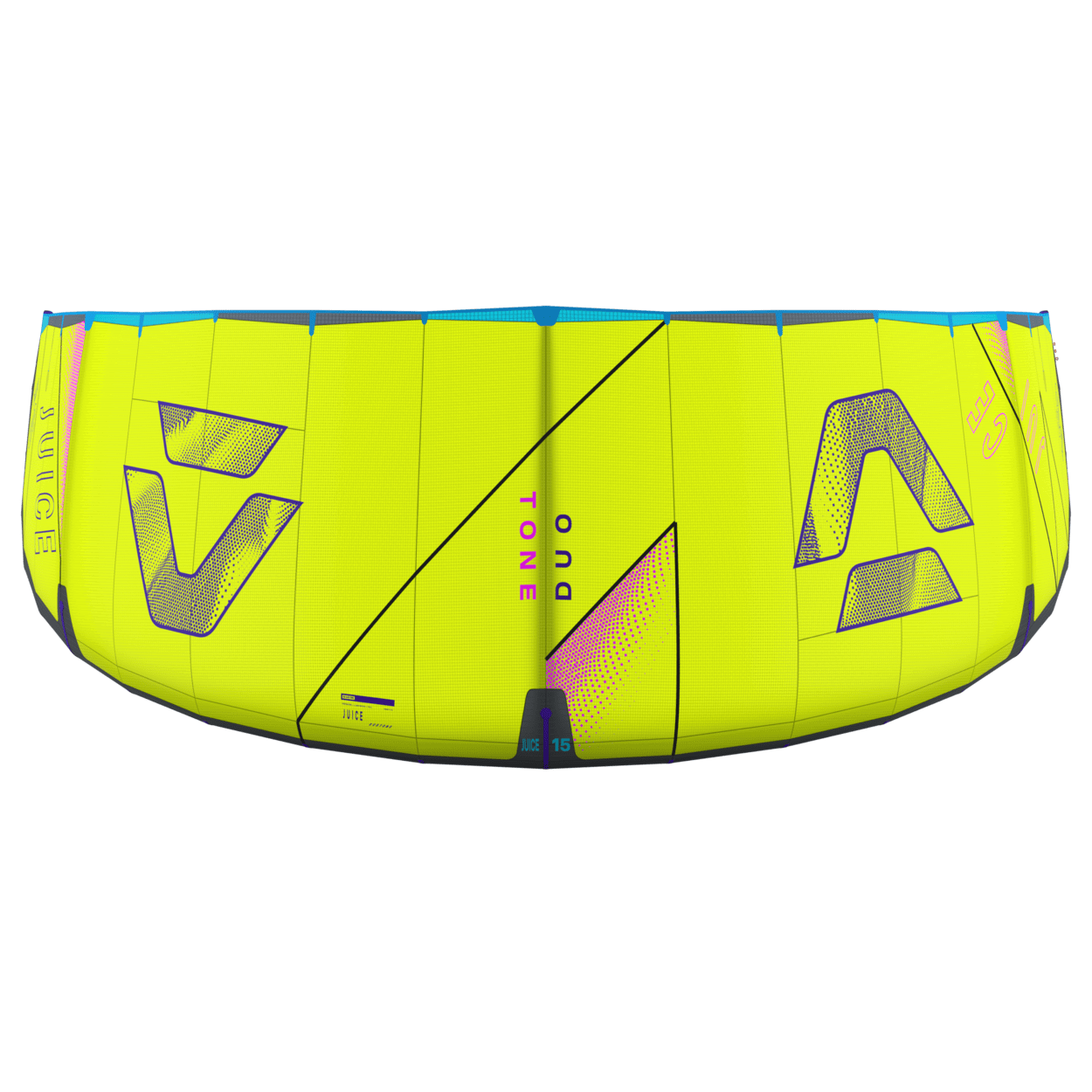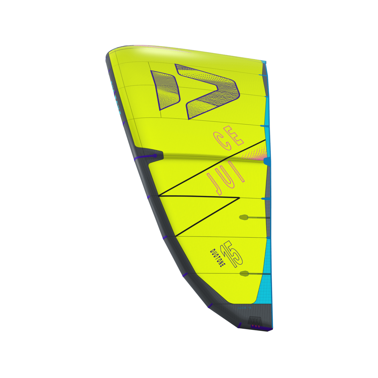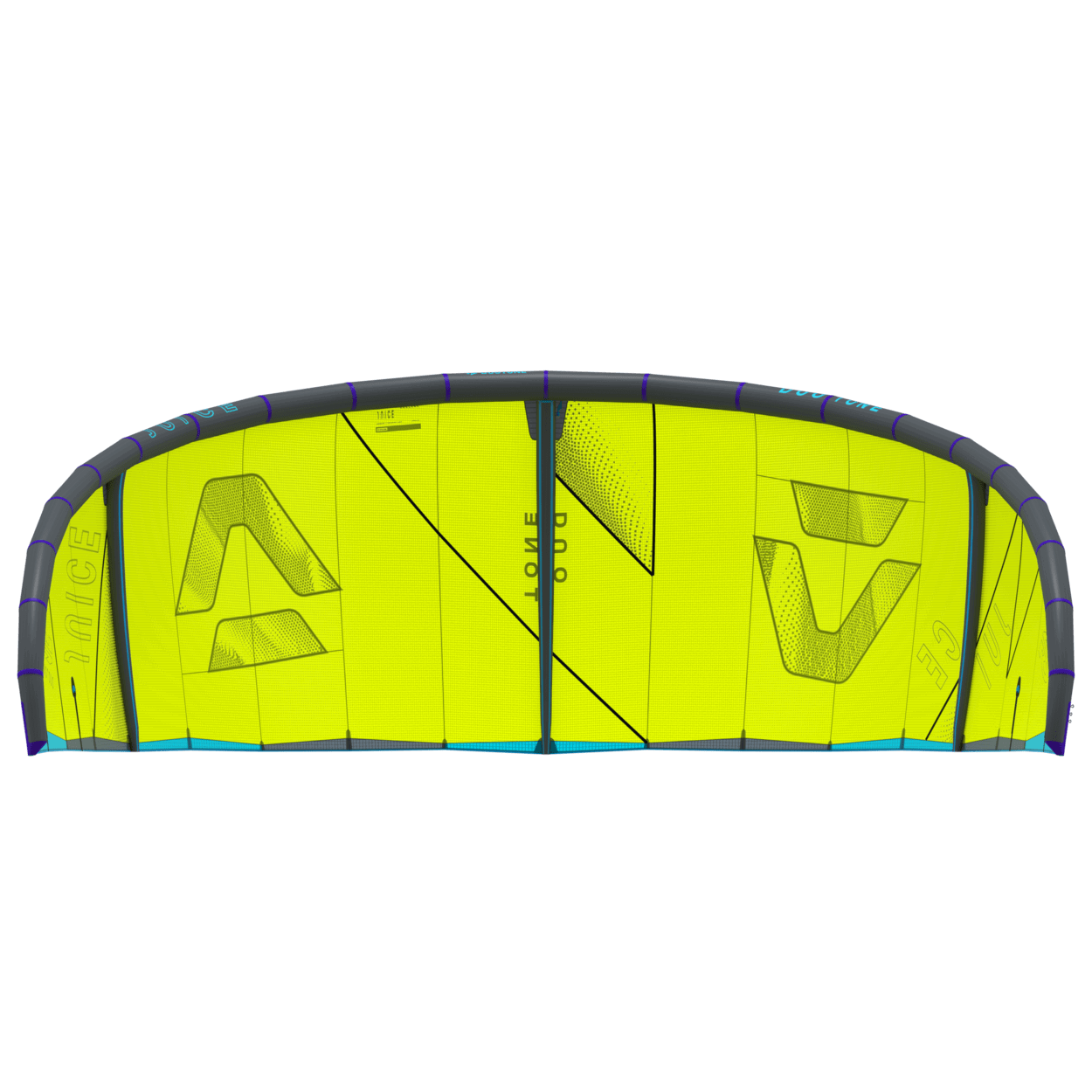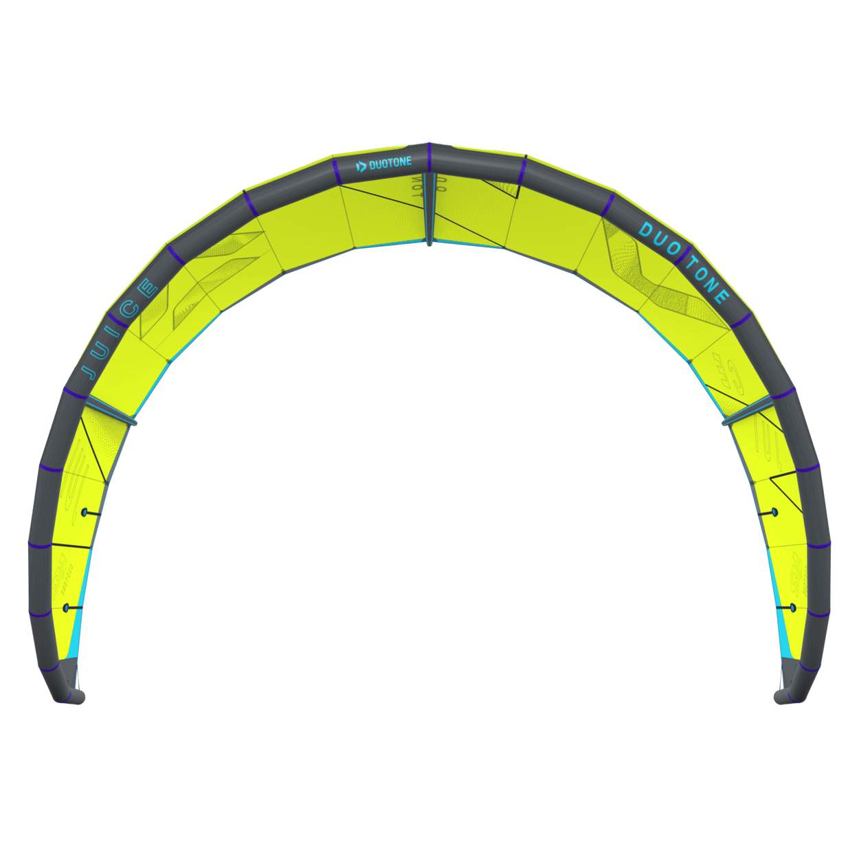 The Duotone Juice offers exceptional lightwind performance through its lightweight construction and meticulous design. Its optimized canopy shape ensures smooth power delivery, allowing you to harness the wind efficiently and start planing early, no matter if on a twintip, a foil or even a surfboard. With top-tier low-end performance, the Juice keeps you riding when others are stranded on the beach. The new design of the Juice sets it apart from its predecessors, boasting increased sweep for more effective water relaunch. The optimized wing tip profile ensures this easy water relaunch even in the lightest conditions, so you can focus on enjoying your session without interruptions. The radical lightwind design of the Juice ensures efficient upwind performance, letting you cover more ground with less effort. To minimize flutter and drag, it incorporates the lightweight batten pocket construction, enhancing the kite's responsiveness and overall smoothness. This light wind weapon now features a refined sweep design, ensuring you can get back up and ride quickly after the kite dropped. This modern redesign emphasizes superior upwind performance, ensuring you can maintain momentum and positioning even in the lightest breezes. With groundbreaking design improvements, this is the easiest Juice to jump with, delivering effortless lift and hang time even when the wind is low. When it comes to lightwind conditions, the Duotone Juice stands unparalleled. Its state-of-the-art design and construction offer you the ability to ride longer, jump higher, and master lightwind sessions with confidence. Whether you're looking to extend your days on the water or maximize your performance in challenging wind conditions, the Duotone Juice is your go-to kite for smooth, powerful, and efficient rides every time. Choose the Duotone Juice and experience the difference of a kite engineered to excel where others fail.