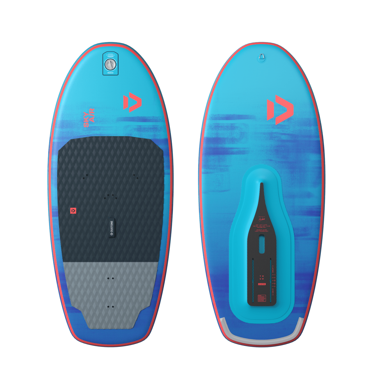 The Sky Air comes in a wheeled backpack that accommodates the board, pump, and all accessories. Additionally, it provides ample space for your wing and foil, making it the ultimate travel companion.With three models in 5’5” (105l), 5’9” (125l) and 7’2” (215l), we’ve focused the Sky Air range on the most popular sizes, of which the smaller two match style and size of the respective Sky Free. The large 7’2” comes with side and tail fins for upwind ability when non foiling to learn the basics before your first take-off.All three models feature our rigid fusion technology with solid carbon plate, including foil tracks and carrying handle which stiffens and adds stability to the stance area. A silicon rail edge offers great release onto the foil, while footstrap options, a premium bag and Multipump for Board and Wing round off this fun, durable and versatile package.
