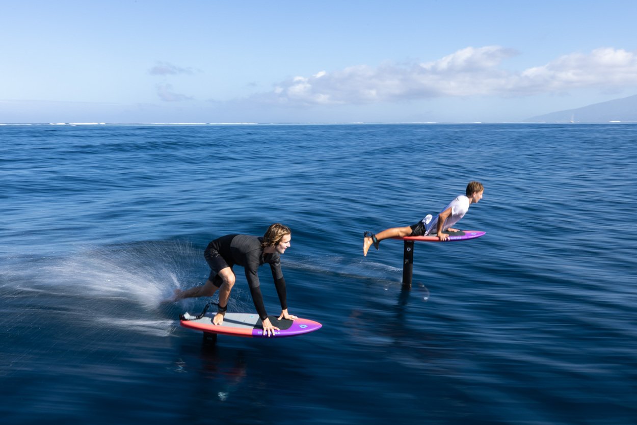 Our Sky Surf SLS covers prone foiling and radical wing action in two shapes ranging from grom to mid weight ripper.The Sky Surf SLS is the board for our team of young blood rippers sending new moves every day! For 2024 the Sky Surf SLS got finely tuned with the input of Finn and Jeffrey Spencer. The two smallest shapes in our range received a rocker update for better pumping abilities and more balanced foot pressure when being used in the surf – with or without a wing. Concave rail bevels make the board easy to grab and duck dive, as well as keeping the rails clear in tight carves.The slightly recessed deck shape provides great stability and an optimized deck angle for increased pumping efficiency. The 25l 4’2” features additional footstrap inserts to adapt the stance even for the smallest riders well below 10 years of age!The 35l 4’4” is our go-to board for all prone foilers out there, plus teenagers and lighter pro level wingers pushing the boundaries of our sport!